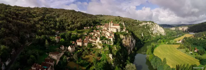 De nombreuses vues panoramiques de Rocamadour, accrochée à une puissante falaise dominant de 150 mètres la vallée encaissée de l'Alzou.