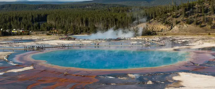 Le premier parc national des États-Unis est un véritable spectacle pour les yeux. Voici les principales attractions géothermales du sud-ouest : Old Faithful, Grand Prismatic Spring, et bien d'autres.