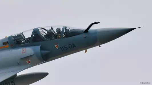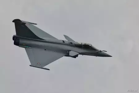 Deux Rafales B (biplaces) venus saluer le site Safran Aircraft Engines de Villaroche le 14 mars 2018.