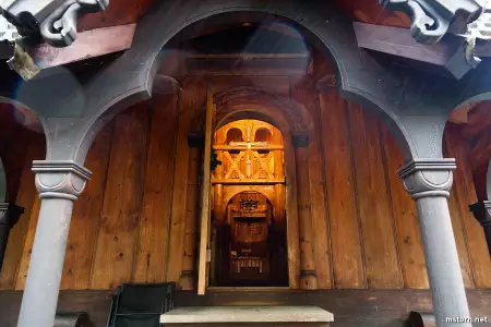 Photos du village de Geiranger à proprement parler, avec ses cabanes, son petit port et son église.