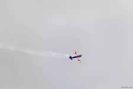 Les trois spectacles de voltige aérienne présentés au salon de Farnborough le 24 juillet 2010 : The Blades, The Red Devils, et enfin The Red Arrows. En bonus, un Extra 300 en solo.