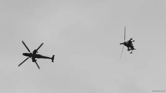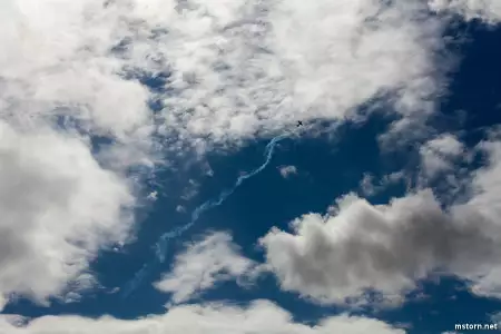 En oubliant la couleur, on se concentre sur la silhouette des avions et la trajectoire que dessinent leurs trainées de fumée.