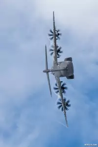 Démonstrations en vol au Salon de Farnborough le 24 juillet 2010. Un pilote de C-27J Spartan s'est fait plaisir à démontrer la maniabilité de son avion en effectuant un looping sous nos yeux[...]