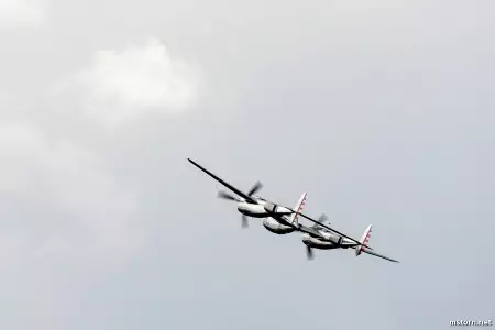 Pour l'édition 2021 quelques avions à la finition chromée ont fait briller le ciel de Villaroche dont un magnifique Lockheed P-38 Lightning.