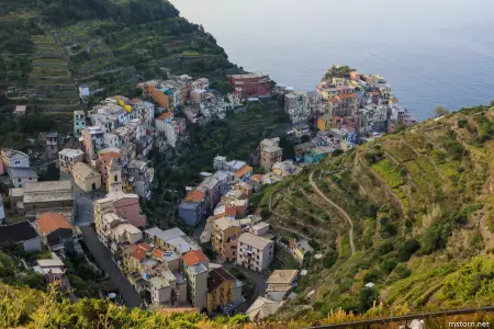 Sur la côte de la Riviera italienne, cinq village colorés se partagent un paysage accidenté et escarpé, tout en relief et aménagé en terrasses pour l'agriculture. J'ai eu l'occasion de visiter quatre d'entre eux : Manarola, Riomaggiore, Corniglia et Vernazza. Fin octobre, une météo douce et une fréquentation raisonnable permettent de profiter au mieux des sentiers de randonnée reliant les villages entre eux. Le sentier entre Manarola et Corliglia offre une vue magnifique sur la Mer Mediterranée.