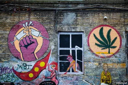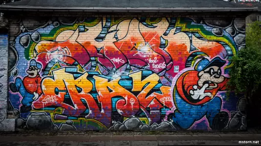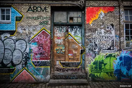 Série de photos d'art urbain des rues de Copenhague. Les 9 premiers apparaissent dans le quartier de Christiania, les 6 derniers dans la rue Ved Glyptoteket.