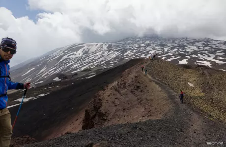 L'incontournable en Sicile : une randonnée sur le volcan Etna qui domine la partie est de l'ile et se rappelle à nous par son activité occasionnelle. En raison de la météo et des reprises d'activité du volcan, ce qui devait être une ascension au sommet devint une descente relaxante le long du versant nord, de 2800m à Piano Provenzana à 1800m.