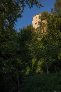 Deux ensembles de cascades ombriennes visitées en septembre 2018. Près de Foligno, le village de Pale abrite sur les hauteurs abrite l'ermitage (Eremo) di Santa Maria Giacobbe construit à flanc de falaise et accessible par un escalier escarpé. Près du village, le ruisseau Menotre se jette à travers la forêt en plusieurs cascades. En cette fin d'après-midi de septembre, le coucher de soleil révèle les jolies couleurs de la vallée.