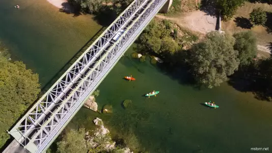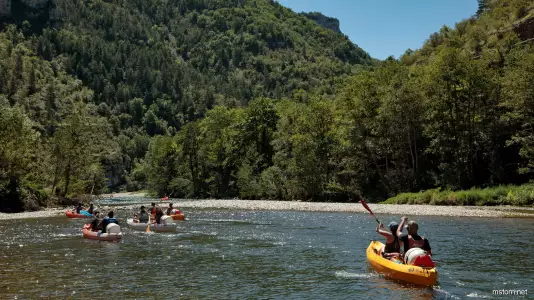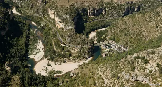 Le long du Tarn : promenade en kayak, visite de Sainte Enimie, vues aériennes de La Cresse et du Château de Peyrelade.